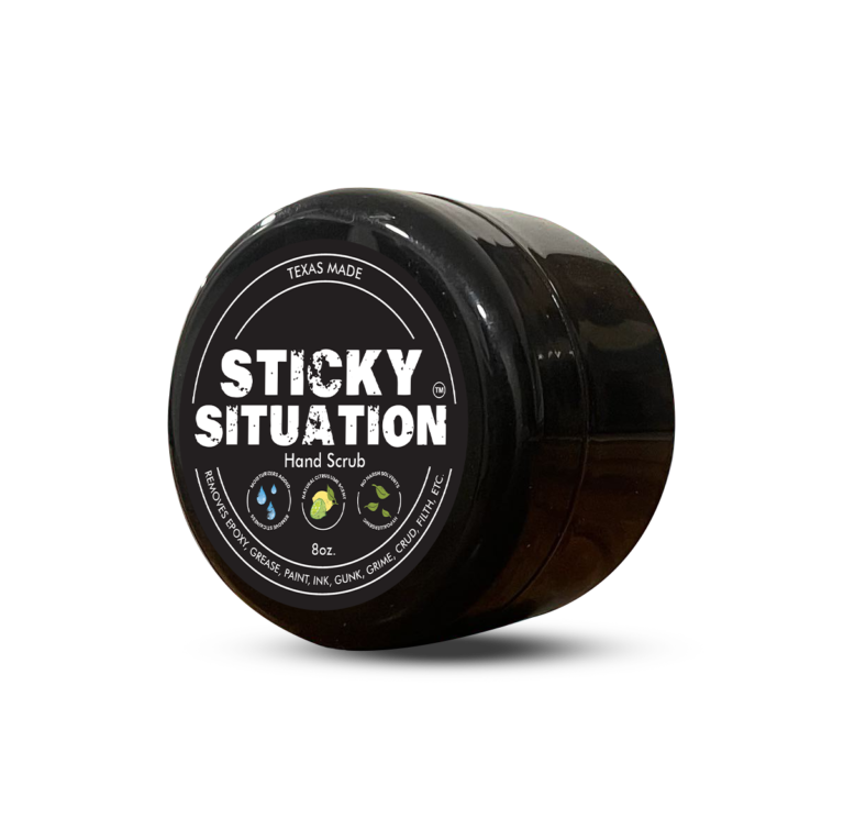 It’s not rocket science, but it is science: hand cleaners are either solvent-based or solvent-free. Solvents dissolve a lot of hard-to-clean messes, but they also take a toll on exposed skin. Frequent handwashing with harsh, solvent-based cleaners can lead to dehydrated and painfully cracked skin. In contrast, Sticky Situation (Hand scrub) uses a special blend of organic abrasives, a small amount of organic solvent, detergents, surfactants, glycerin, and water, along with some trade secrets, for an effective formulation. See sds sheet for more details.